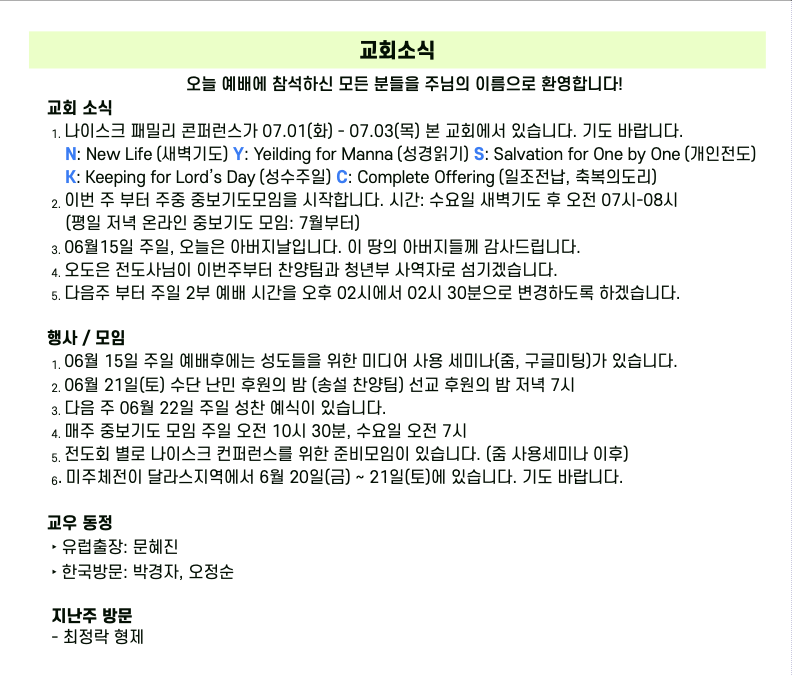 • 예배 안내