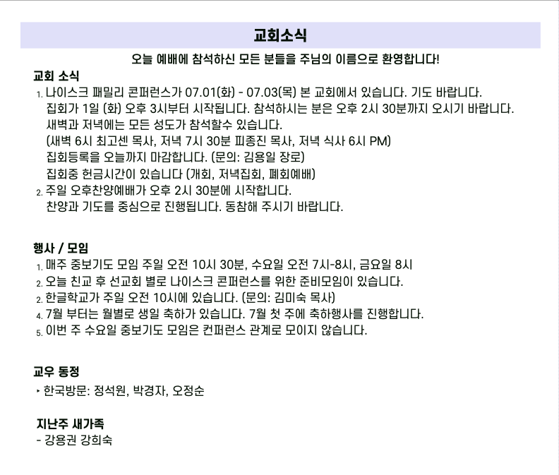 예배 안내