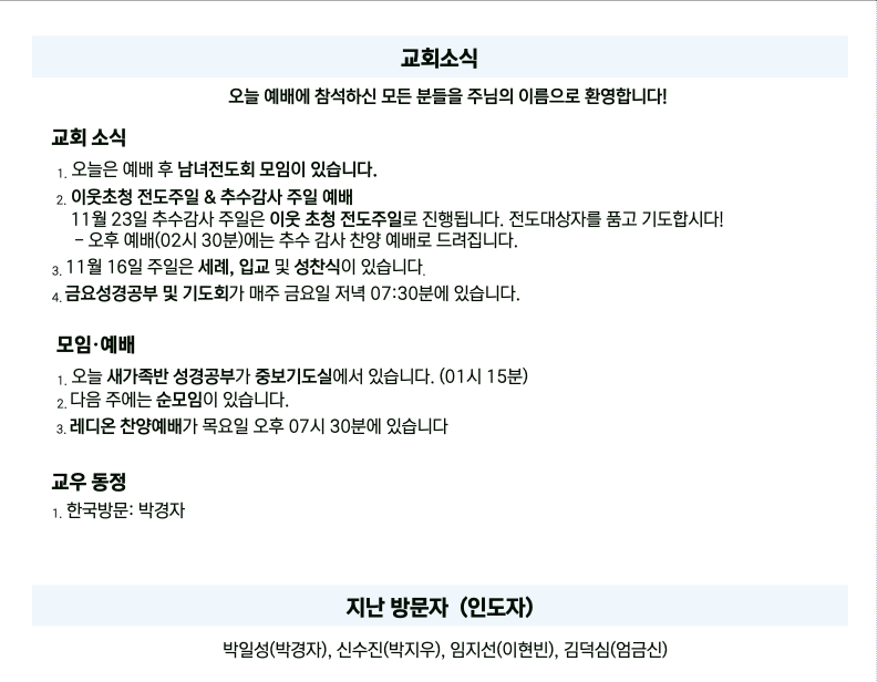 예배 안내
