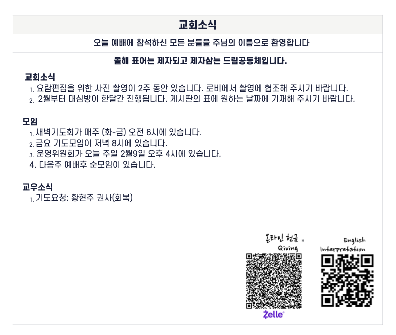 예배 안내