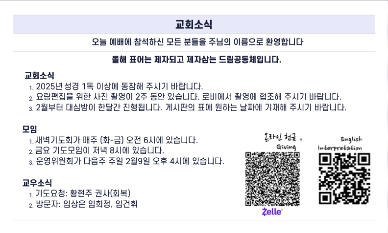 예배 안내